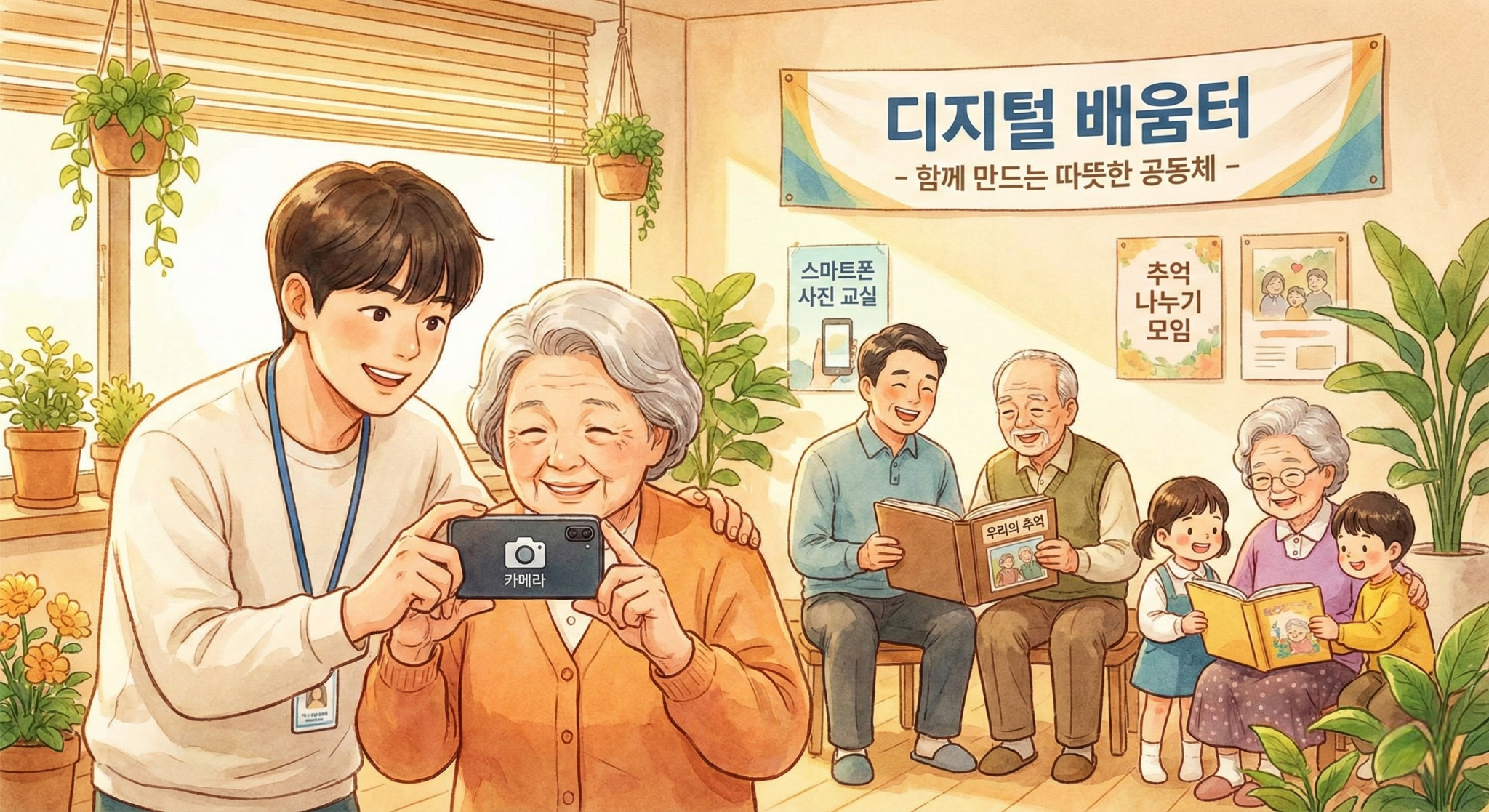 프로그램 핵심: 청년들이 어르신들에게 디지털 기기 사용법을 가르치고, 어르신들은 인생 경험과 지혜를 청년들에게 나누는 '상호 배움'의 구조였습니다. 단순한 일방적 교육이 아닌, 서로가 선생님이자 학생이 되는 특별한 방식이었어요.