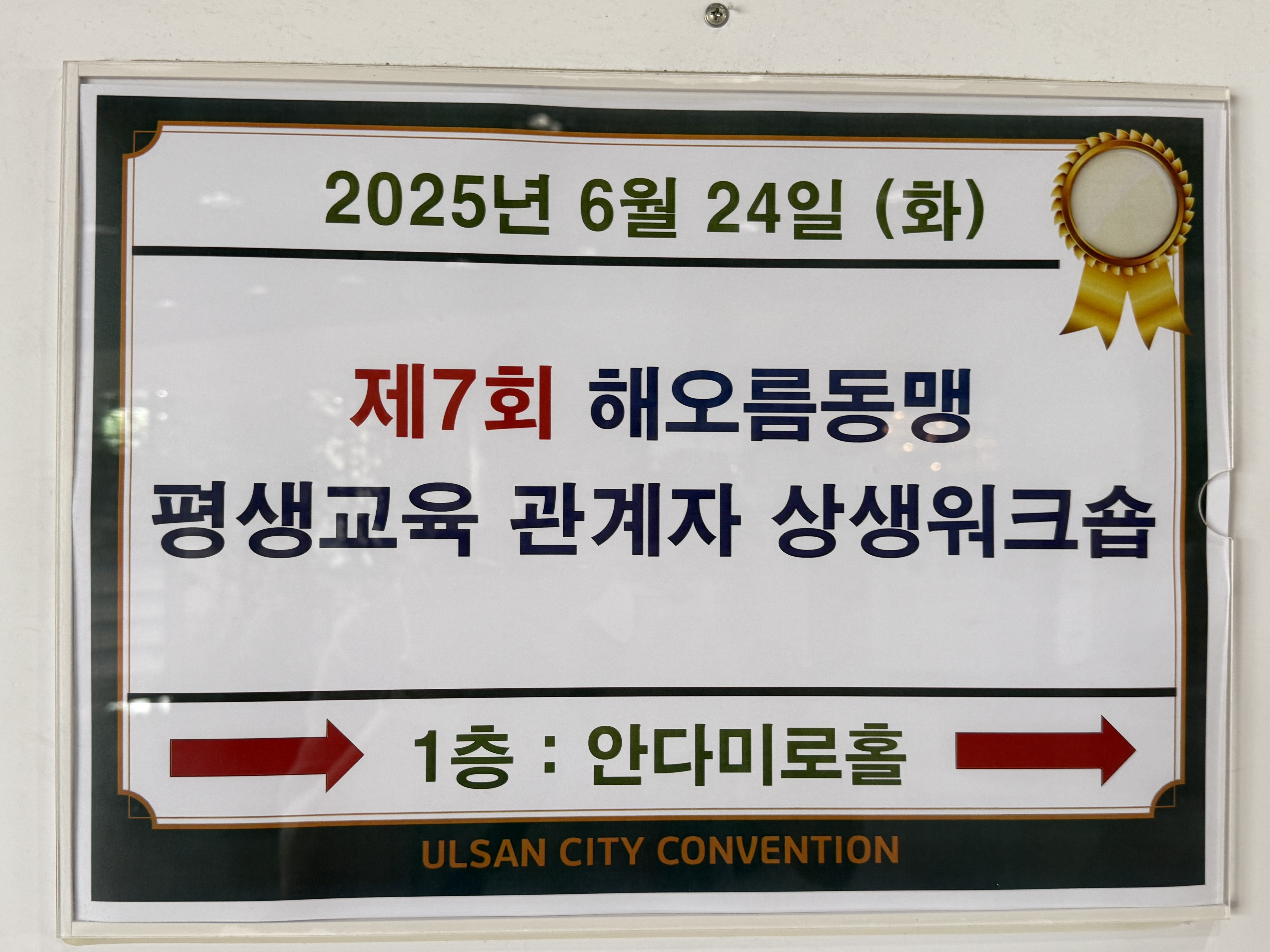 | ✨ 행사명 | 제7회 해오름동맹 평생교육 관계자 상생워크숍 “지역을 바꾸는 평생학습, 해오름동맹이 만드는 변화의 물결” |